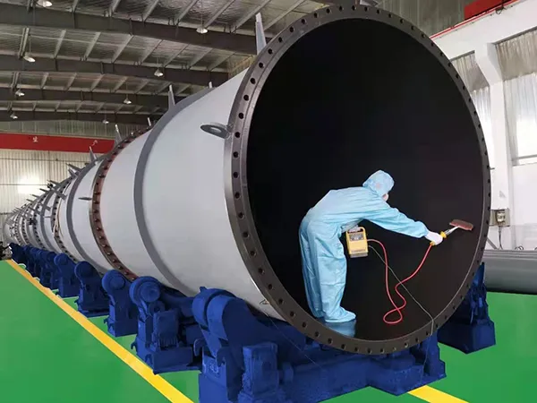 Quy trình sản xuất pin Li-ion đòi hỏi thiết bị phải chịu được môi trường hóa chất mạnh và đảm bảo độ tinh khiết cao. Các lớp sơn phủ và lót fluoropolymer giúp duy trì độ ổn định của quy trình sản xuất bằng cách giảm thiểu ăn mòn, nhiễm bẩn và suy giảm vật liệu. Với hơn 20 năm kinh nghiệm, chúng tôi sở hữu đội ngũ chuyên gia có năng lực cung cấp giải pháp tùy chỉnh cho bồn phản ứng, bồn chứa và thùng di động sử dụng trong sản xuất pin. Cơ sở của chúng tôi bao gồm 27 lò xử lý, trong đó có một lò lớn nhất Trung Quốc với đường kính 5m × dài 10m, 15 lò đường kính 4.5m và 4 lò điện cỡ nhỏ phục vụ các thử nghiệm thí điểm. Chúng tôi cũng vận hành 1 phòng sạch cấp 1000 dành cho sơn phủ chính xác, 1 sạch cấp 10.000 có diện tích 4000㎡ cho quy trình sơn lót và 1 xưởng lót tiêu chuẩn công nghiệp 5000㎡. Các dịch vụ thi công tại chỗ được cung cấp cho thiết bị cồng kềnh hoặc không thể vận chuyển.